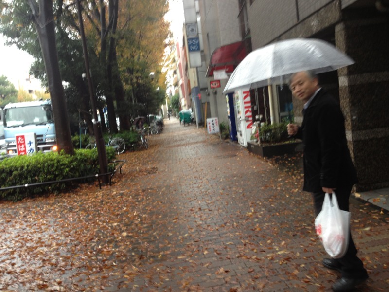教会事務所に戻ってきました。 落葉のジュウタンの上を歩いて… アマガイ