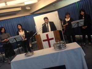 賛美の時、コーラスには天谷さんの奥さんが歌っています。