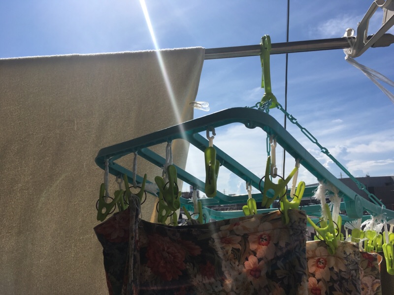 午前中に乾したものを取りこんで、第2弾を乾しています。 西日の当たるベランダなので、これからの時間もよく乾きます!