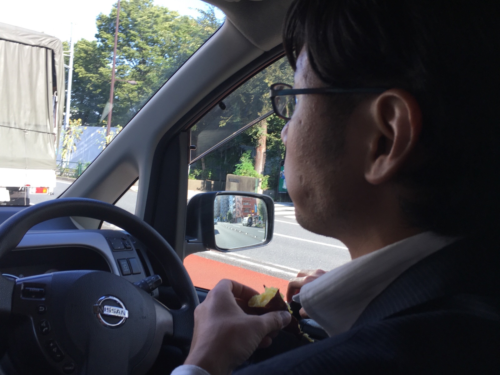 Giftsで焼き芋を一個買いました! ブログに合ったいい物を買ったな〜と笠原さん。 まさに秋の味覚! Kayano