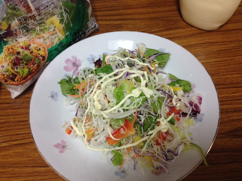半額でゲットしたサラダ170g。 まず半分いただきました。 kato