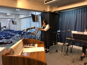 前半賛美担当の清水さんと奏楽の小畑さん。