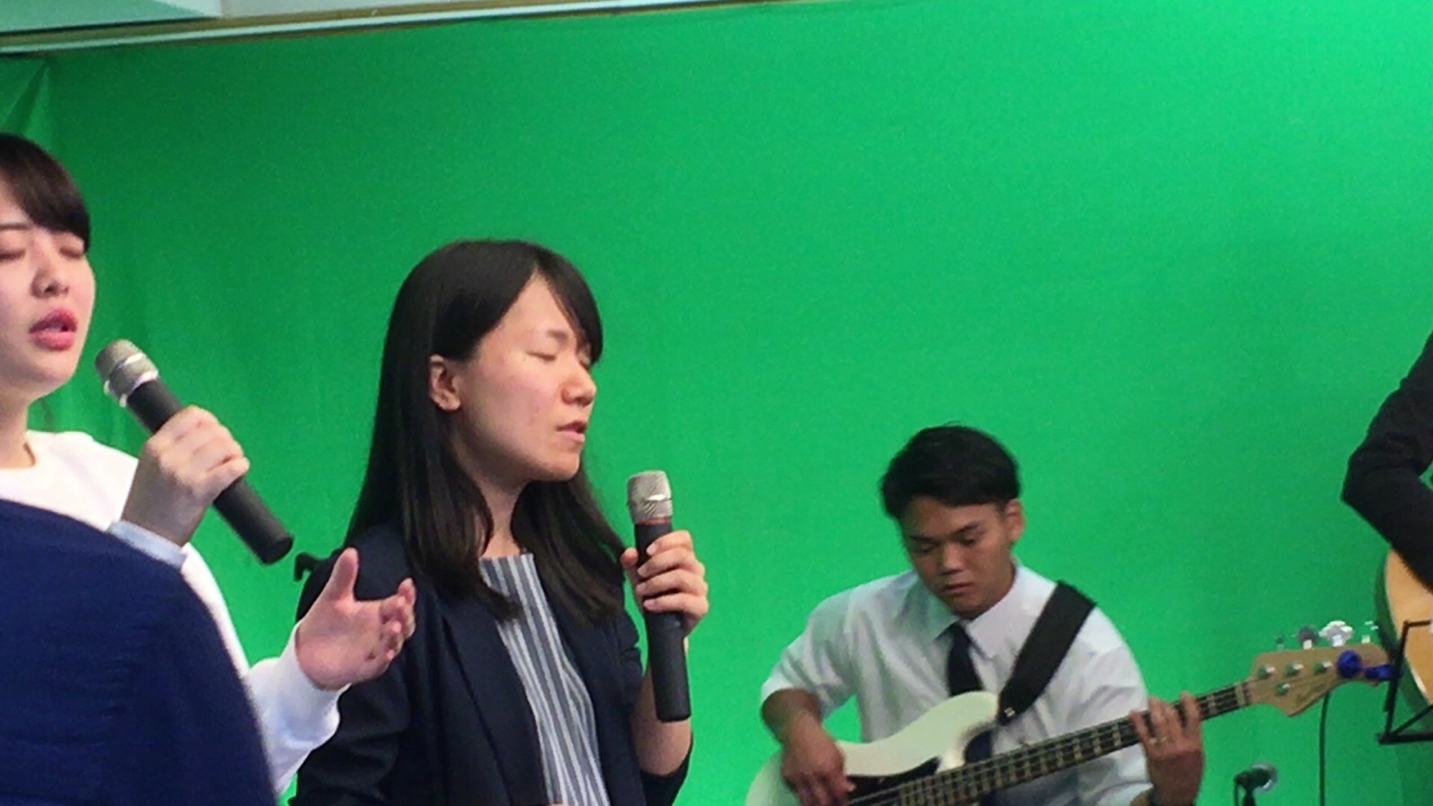 新しい賛美を 歌えるジョイちゃんに マイクが渡されます ♪( ´θ`)