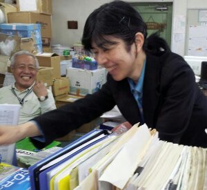 稲川さんが事務局に到着。直ぐに、忙しくお仕事をしていらっしゃいます。