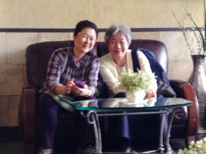 礎の石孤児院スタッフの、吉田さんと今村さん。アイフォンを手に、お二人で、何やら 真剣に話しておられました!! ☆☆☆= M