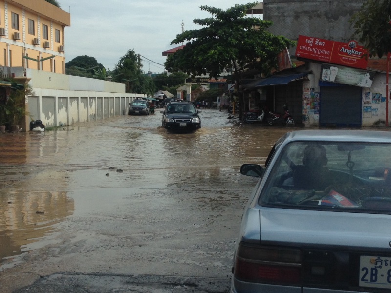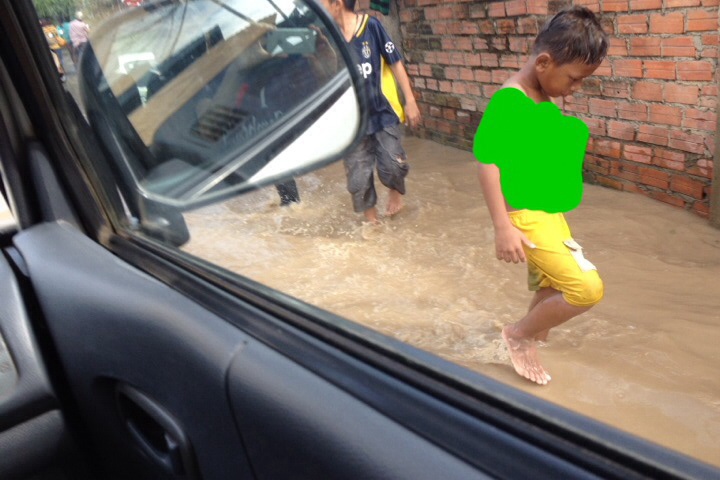 雨は上がったけれど、場所によっては湖が出来てます! カンボジア孤児院 Imai