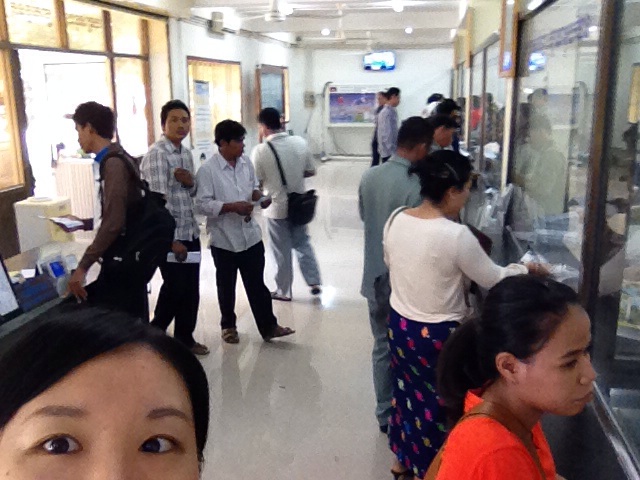 水道、電話、授業料、インターネット等、数々の支払いに行ってきました。一番手前の横顔が私と同室のスタッフさん。 カンボジア孤児院 Imai