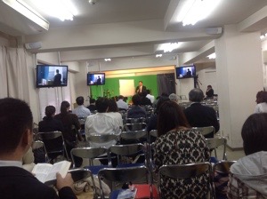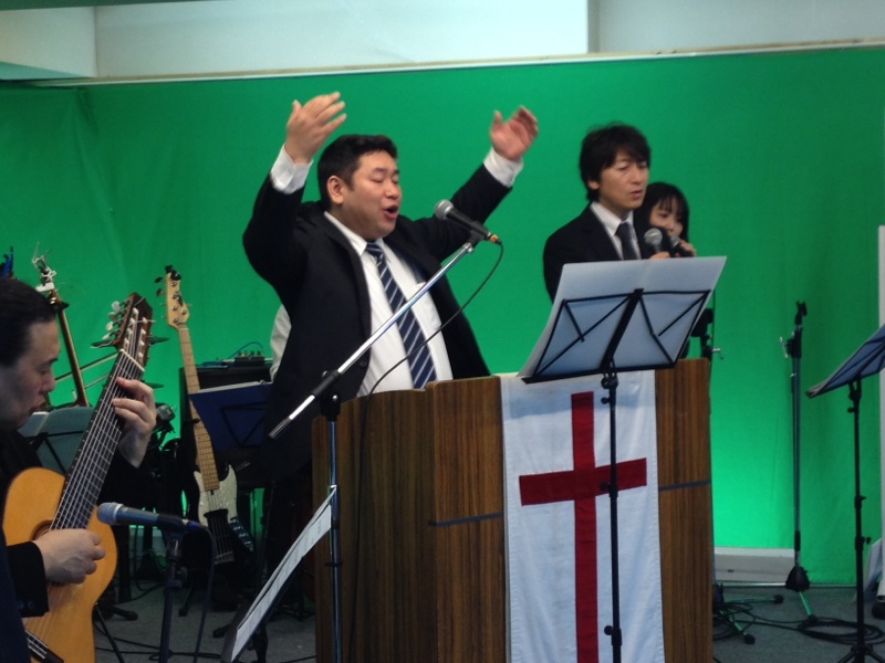 礼拝スタート! 賛美リーダーはジョセフ前田さん。
