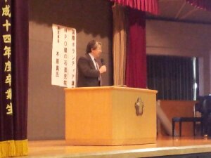 都内の高校で礎の石孤児院の講演会が行われた時の写真です。 講演会の後も、熱く語られる木原副理事長の回りには、いつも生徒さんたちが集まります。