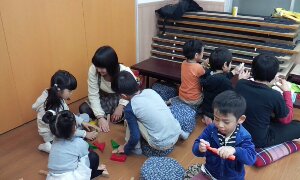 子ども礼拝が終わって、第三礼拝の時間は、小さな子どもたちも大きな子どもたちも一緒に楽しく遊びます。 雨が上がったので、外でも遊べますね! masako♪