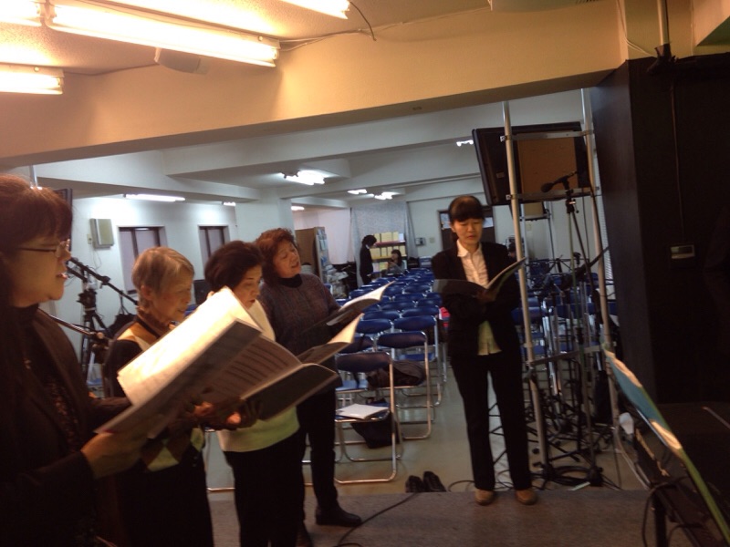第3礼拝の後、渡辺さんは窪田さんの学びに参加しています。今日のクワイヤ練習には間に合いませんでした。(yoshino)