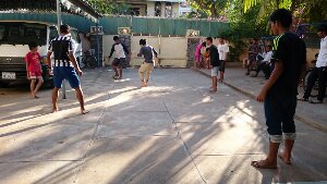 2015年 12月、カンボジア孤児院の男の子達と 日本からのチ━ムメンバ━の男子が、サッカーをした時の様子。 ボ━ルは、籐の様なもので編んだ ボ━ルでした! Megumi