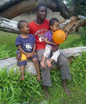 テリースと息子たち。良き友、良き喧嘩相手? (ザンビア)