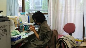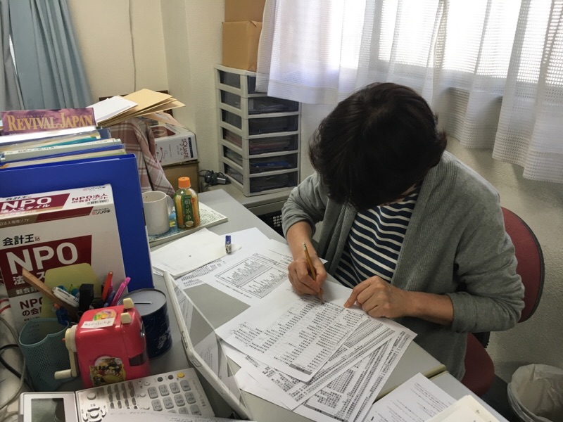上西さんはデータを見ながら、リスト作成中。(yoshino)