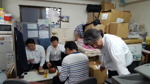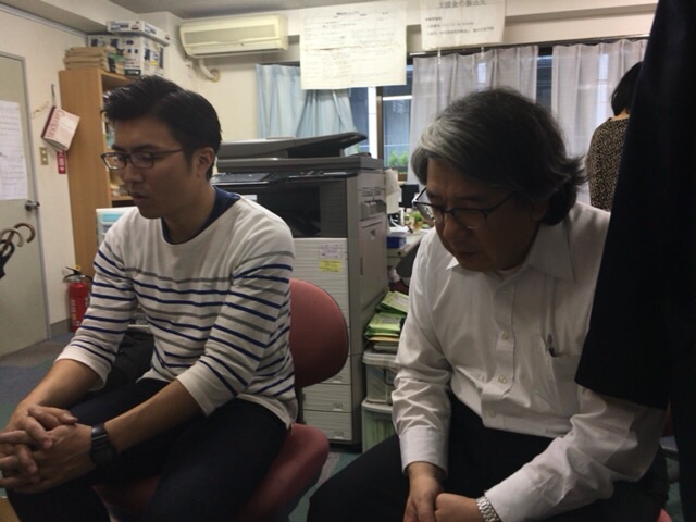 孤児院事務局で木原さんとともに光くん、笠原くんも来て、祈り会を持っています! peter