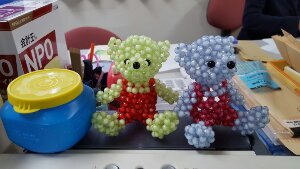 カンボジア孤児院の子どもたちが作ったクマさんです。事務局の雰囲気を和ませています。