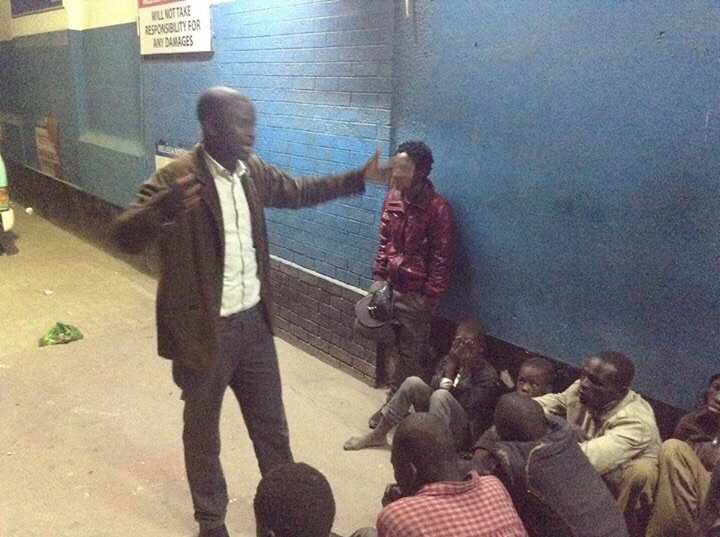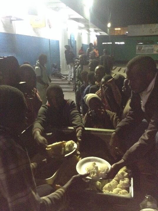 寒さと飢えのため、薬物を使用する青少年達。伝道と共に食物も配っているようです。〜ザンビア〜(yoshino)