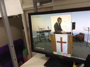 もうすく始まる、ヤング礼拝のスタンバイをする、中嶋君です! MEGUMI.I