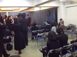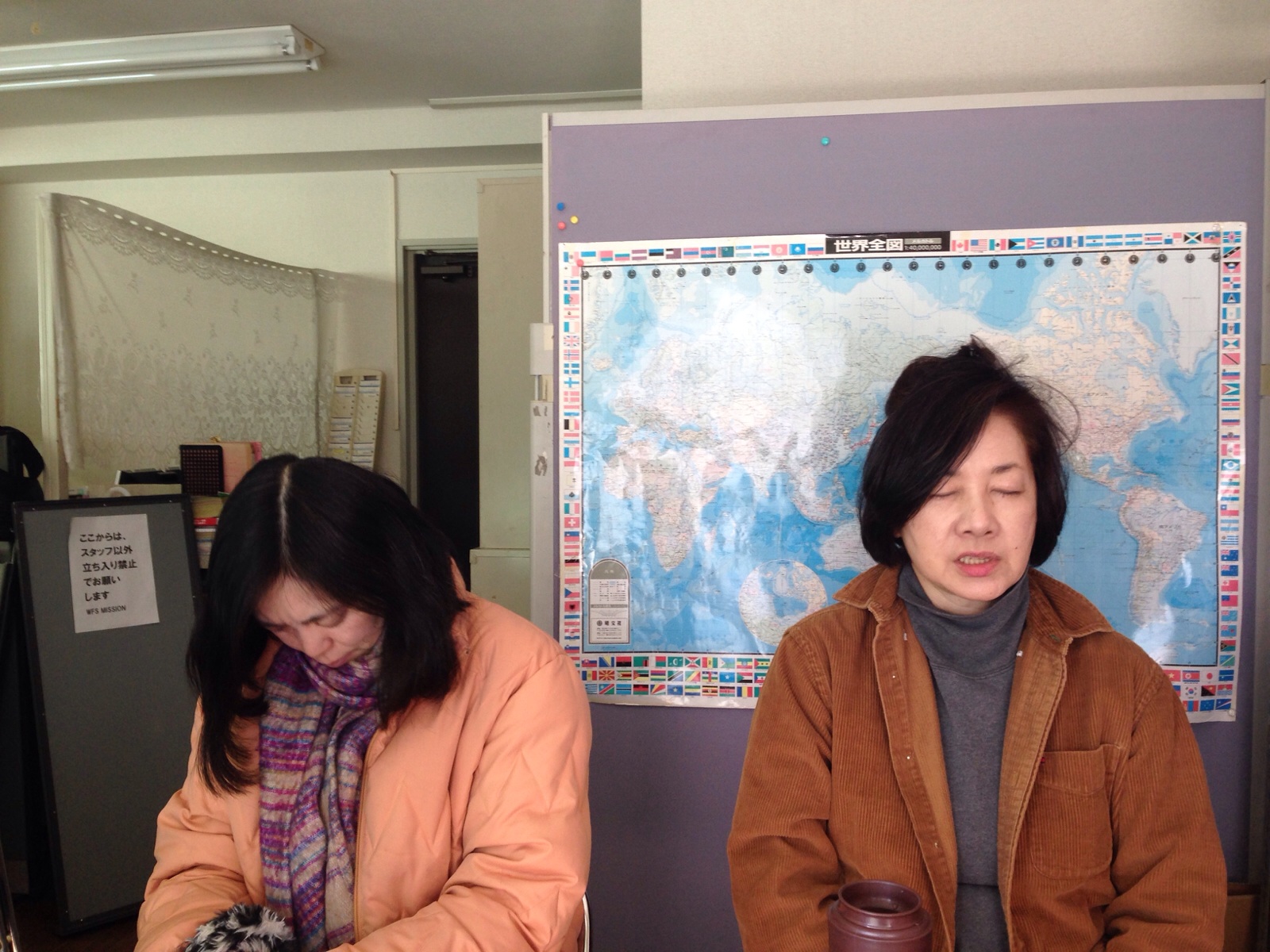 明日の礼拝のために集まって祈っています。 東京そぞろ歩き隊