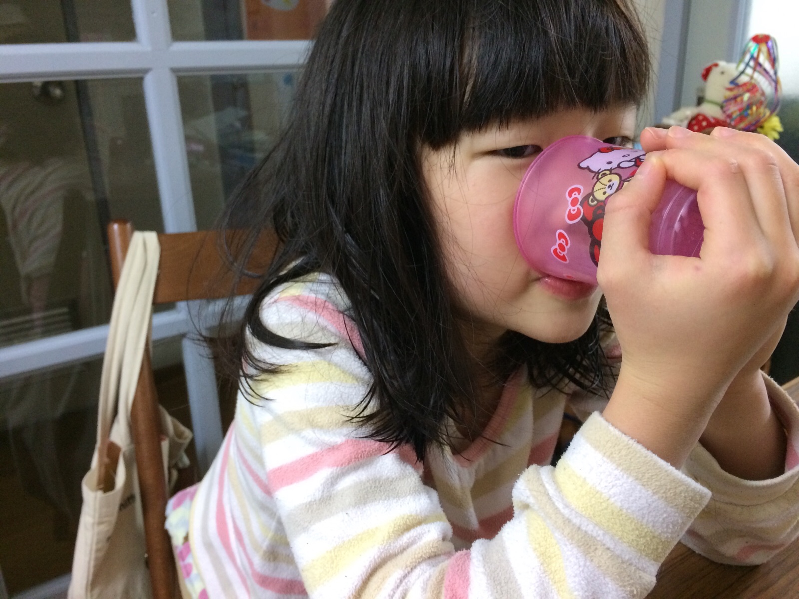 レモン牛乳?、おいしかったです! 相当気に入ったようで、ゴクゴク飲んでます。 今日もすくすく ふじい