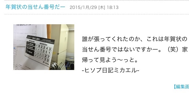 ヒソプ日記のミカエルさんがアップされた記事を見て、まだチェックしていなかった年賀状のチェックをしてみたら、長男宛のハガキが当たってました〜☆ 感謝します(^-^)♫ Truth Akemi