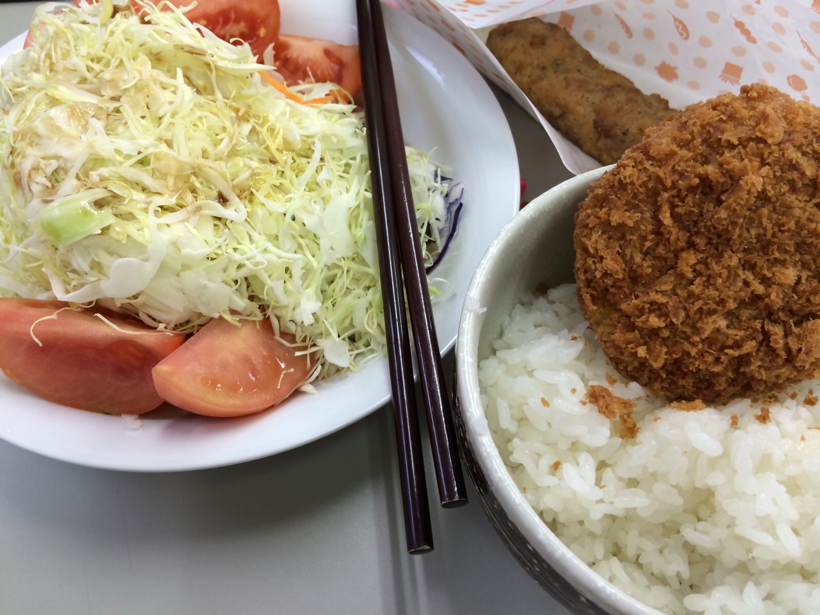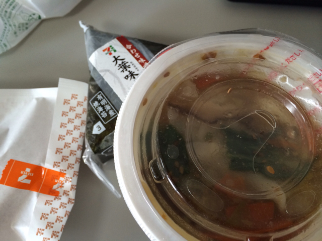 お昼、買って来ました! 野菜がたっぷり入った、生姜が効いた餃子スープとコロッケを。 Gifts日記 kayano