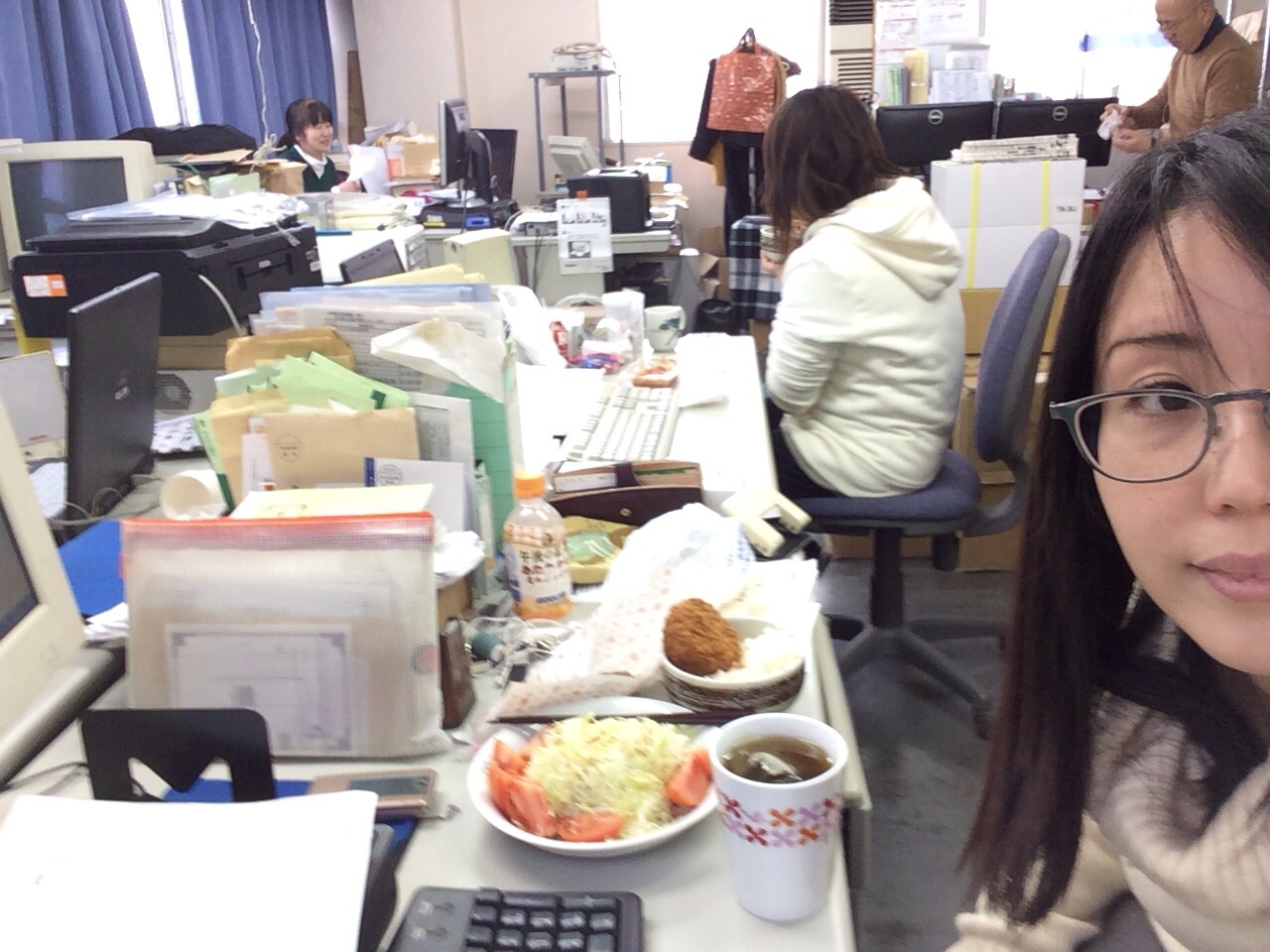 今日はテーブルがPCでいっぱいなので、それぞれの席でご飯〜。 -ヒソプ日記ミカエル-