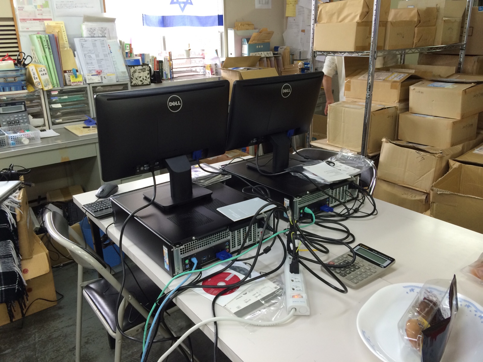 まだ98のPCまである雲虹の事務所。これからの働きに備えて新しいPC購入〜!やった〜! (昨日、Giftsのヒサさんが設定してくれたものです。) -ヒソプ日記ミカエル-