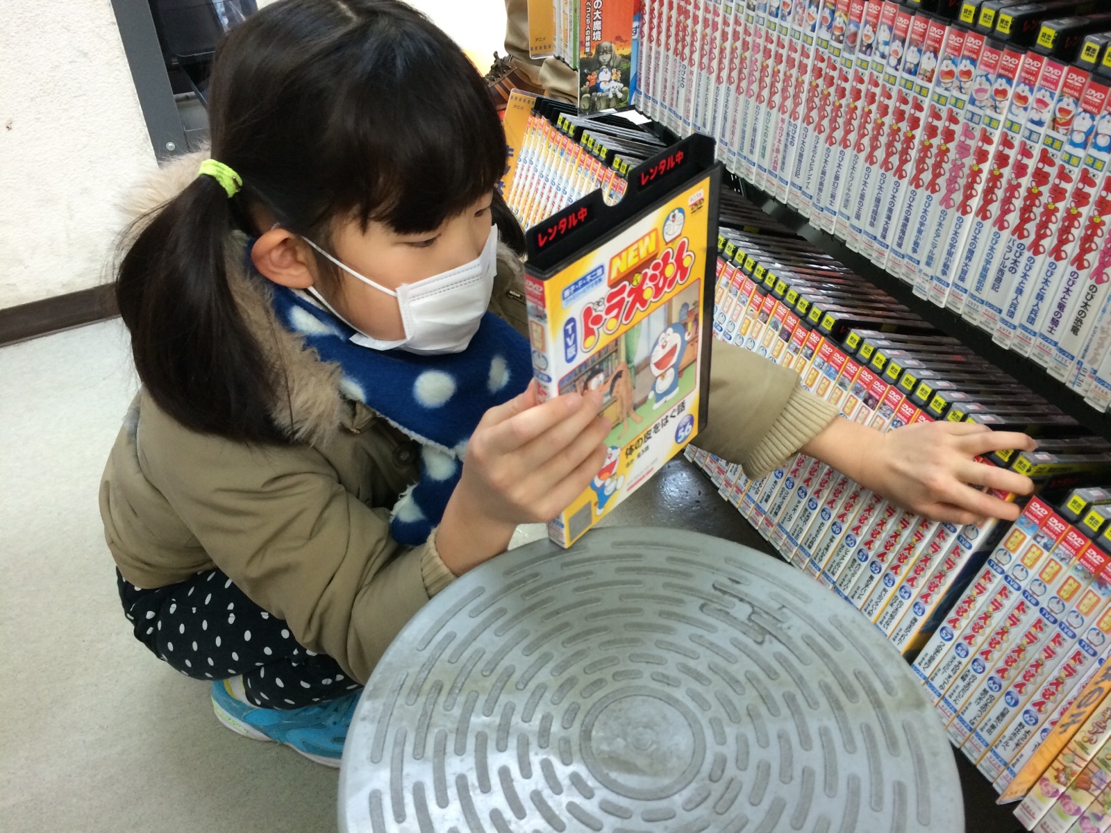 学級閉鎖、最終日。 つまらない〜、と言うので、DVDを借りに来ました。 やっぱり、ドラえもんです…。 今日もすくすく ふじい