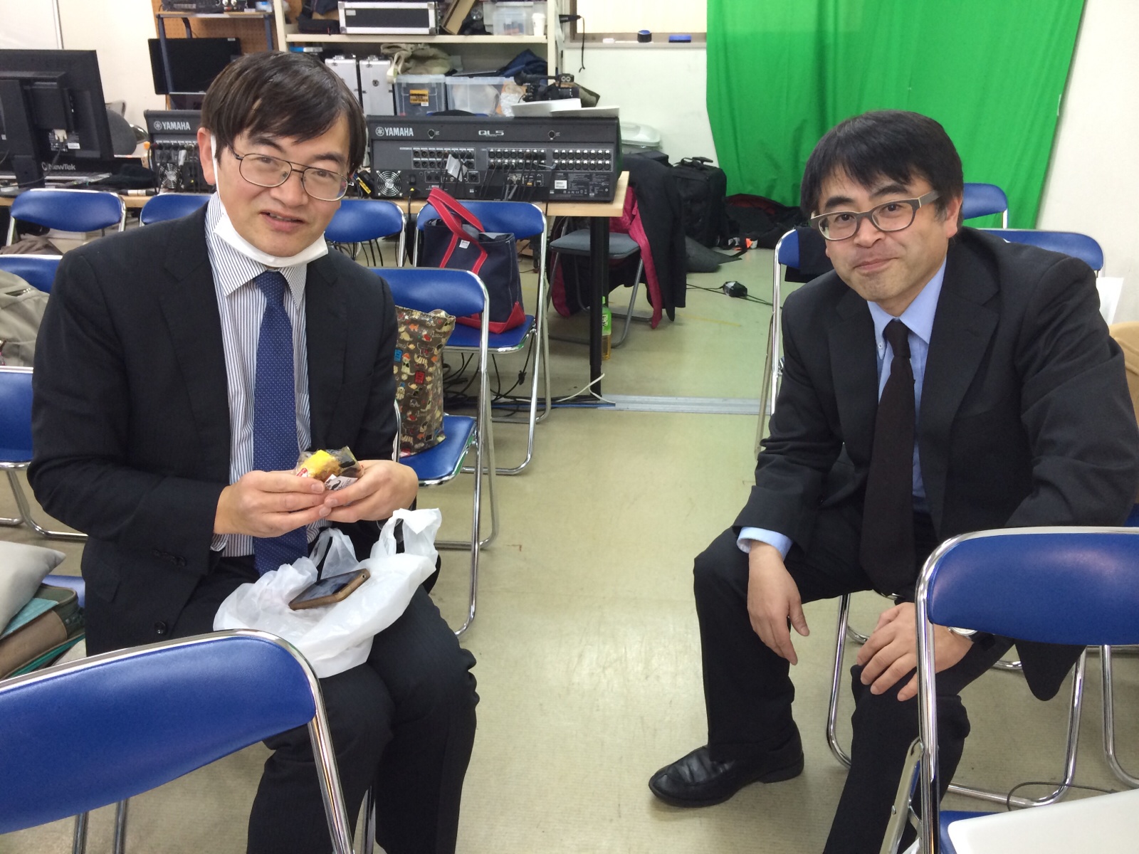 「ひつじやさんのマンガエッセイ」の大久保さんと、 「ピータークボタのハリウッド映画大好き」のピーターさん。 白馬の映像祭に出す映像の相談らしい。楽しみ〜。