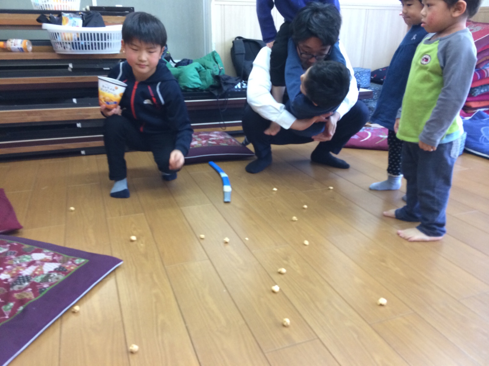 ご飯食べ終わる子〜 お菓子こぼす子〜 座布団の山に乗ってる子〜 -ヒソプ日記ミカエル-