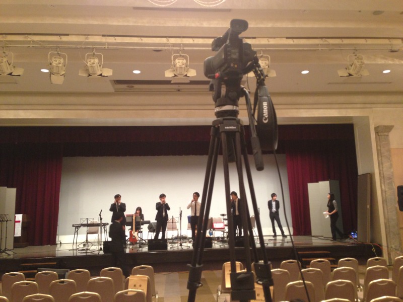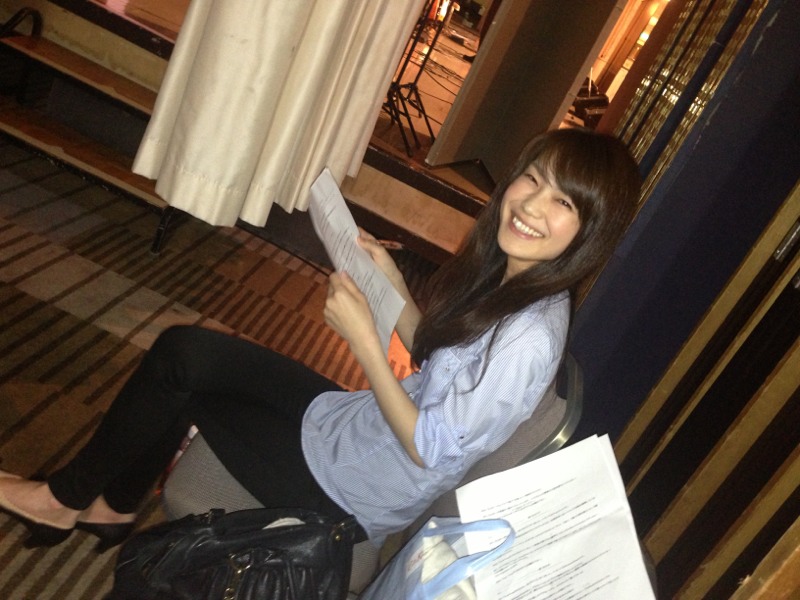 舞台裏では、司会のまりさんが台本読みを。