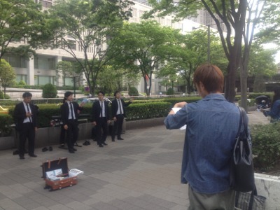 若い方から年配の方まで、立ち止まって聞かれています。、