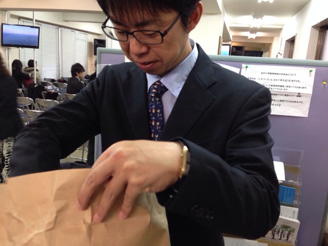 樋口さんがいつもの書類を引き取りに売店に来ましたが、誰にも相手にされず、いじけています。 会堂にて