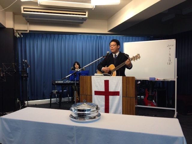 土曜礼拝、益川さんが前半賛美。