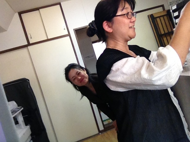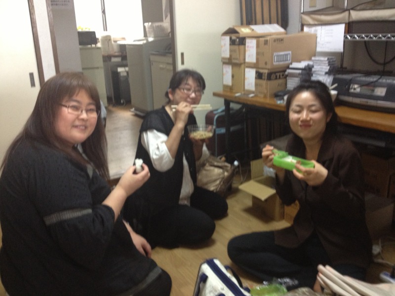 食べている…神学校の女性陣! 美味しそうですね〜! 〜教会事務所にて〜