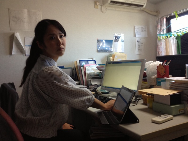 販売係りの香さん!急いで作業して会堂に行きました。「早っ」
