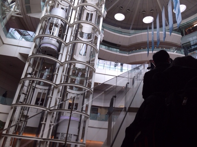 出発カウンターは二階です!