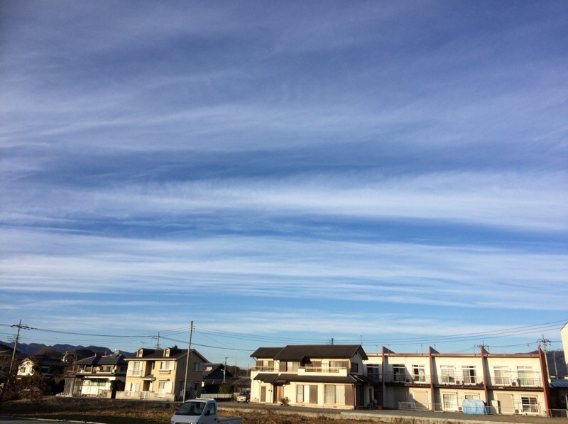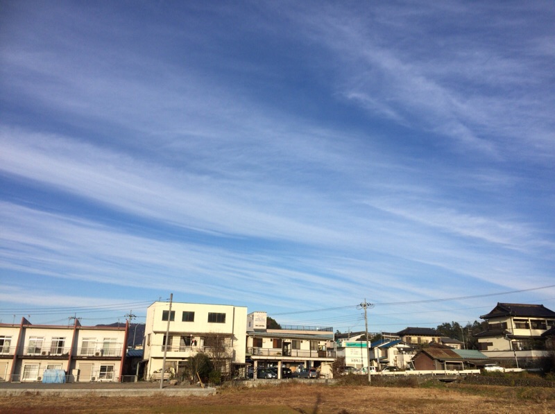 日がしずむ少し前の!(・・)今日の雲です。 家の裏の以前は田んぼだった風景です。 やまなか