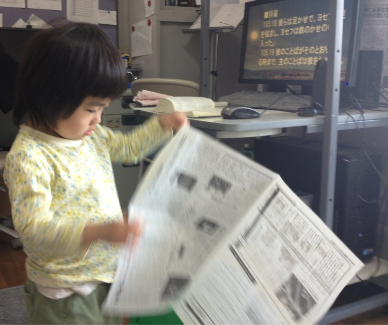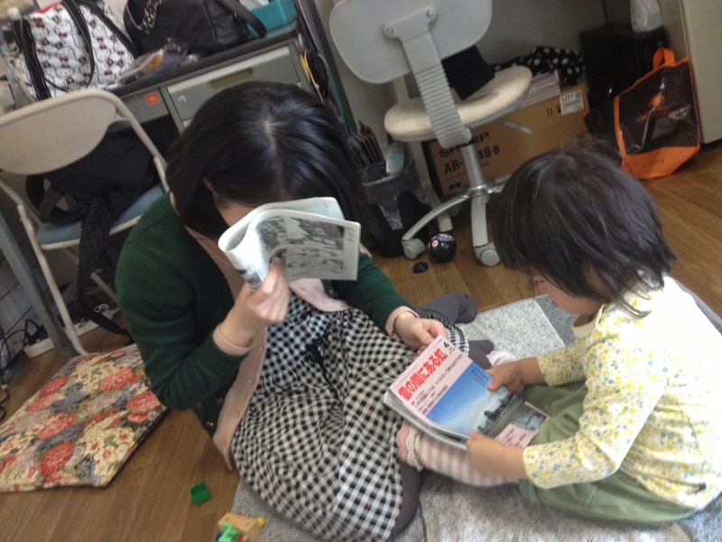 るんちゃん、熱心に?読んで…います。 おもしろ〜い…?! 東京アンテオケ