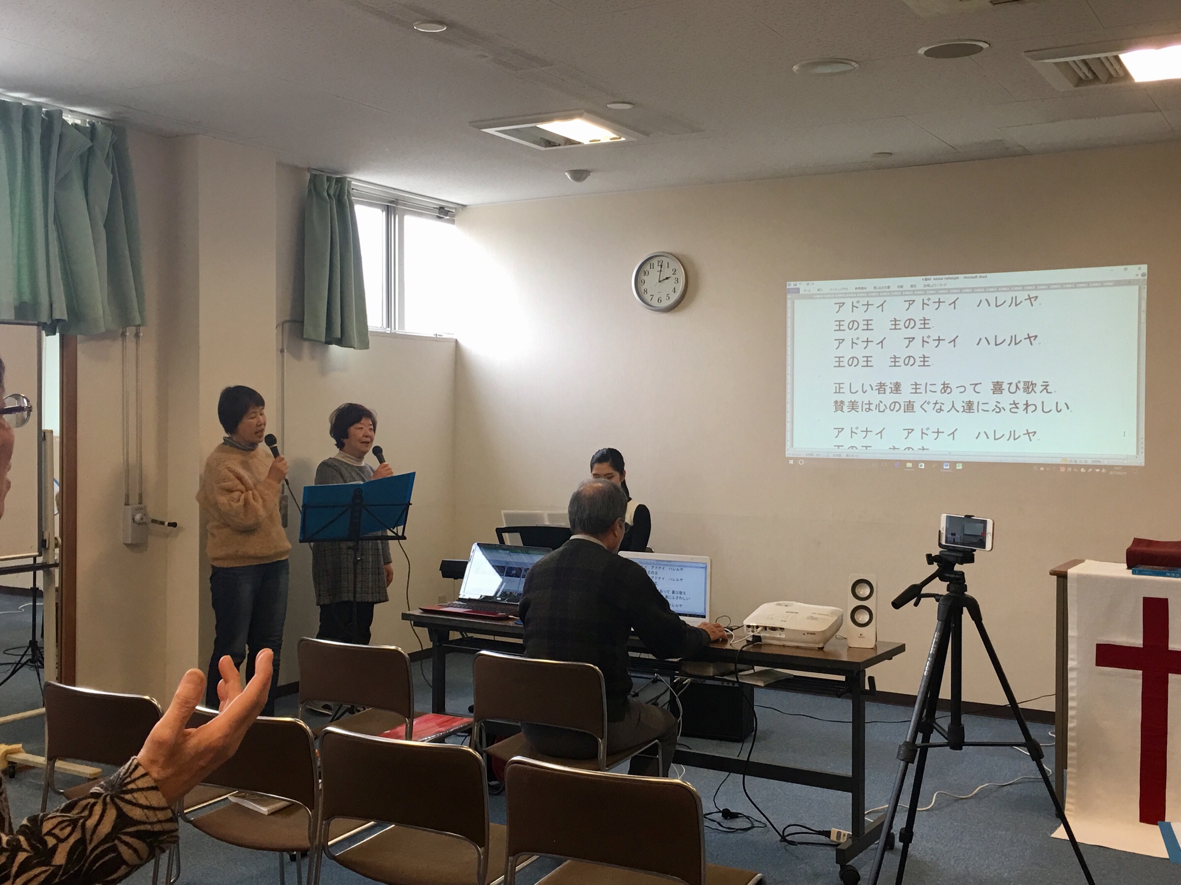 パウロ秋元さんの導きで賛美を捧げています。