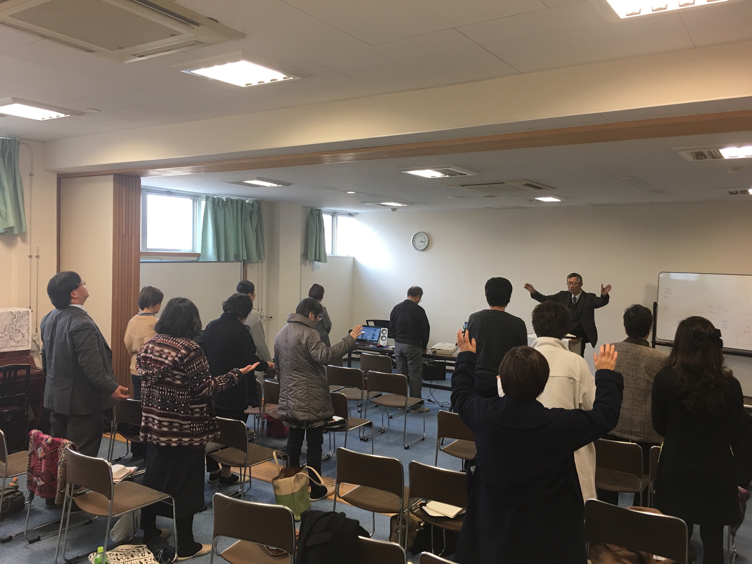 セミナーの前に賛美を捧げています。