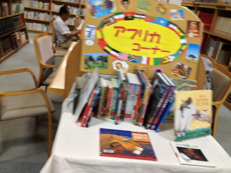 図書館にアフリカコーナーがありました! 絵本がいっぱい☆ スゴく興味があります〜!