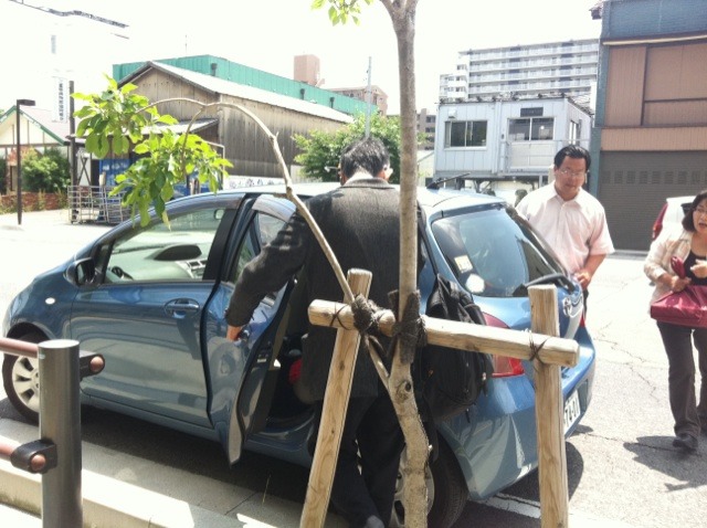 秋元牧師とともに桑名から名古屋へ。車の中でお弁当を召し上がっていただきます。