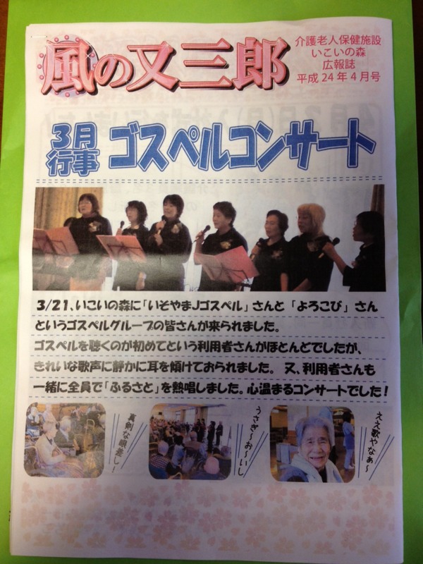 昨年、磯山ゴスペルクラブの訪問コンサート後、中部賛美大会に出る事をみんなで決意した、思い出の写真です。 四日市