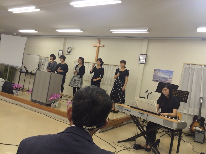 前半の賛美の時です。 ♪笑顔といっしょに♪