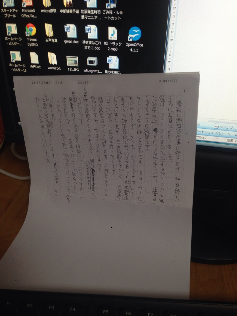 秋元さんからの原稿です 確かに受け取りました! 早速、打ち込みです。 果たして出発まで間に合うのか? 四日市シオン教会
