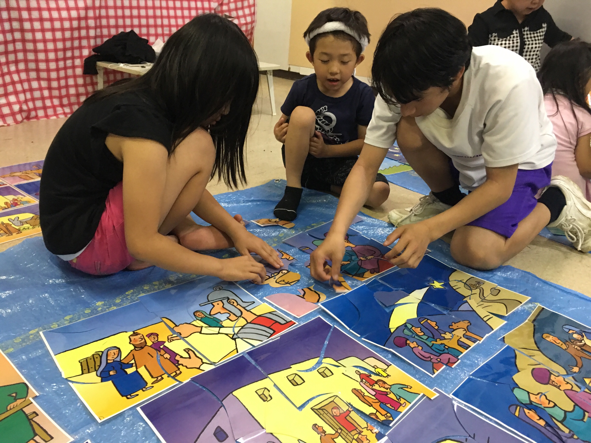 聖書のジクソーパズルもしました!見本を見ながら、助け合いながら完成しました♪後片付けもみんなで出来たよ〜〜!