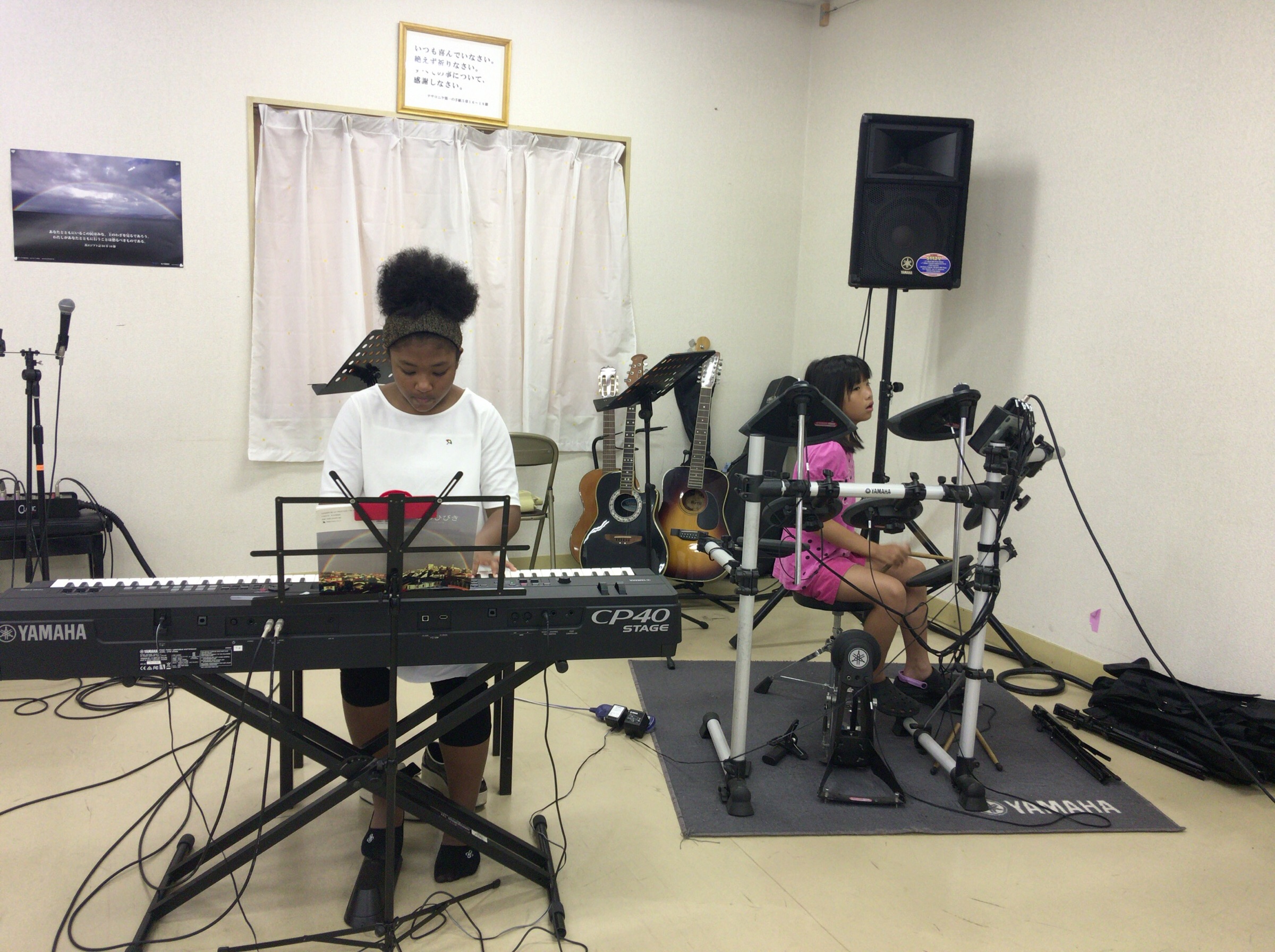 今日はエッちゃんがピアノの奏楽〜♫ ヒナちゃんはドラム叩いてます! 四日市