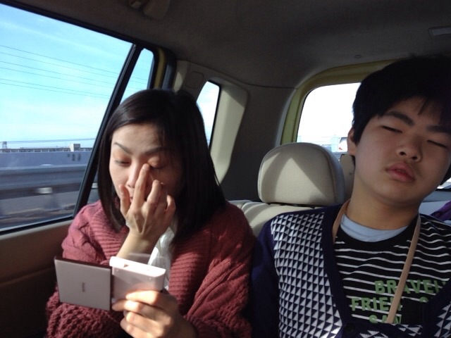 車内でメイク中のりえちゃん かなり揺れてるけど大丈夫です! 四日市シオン教会